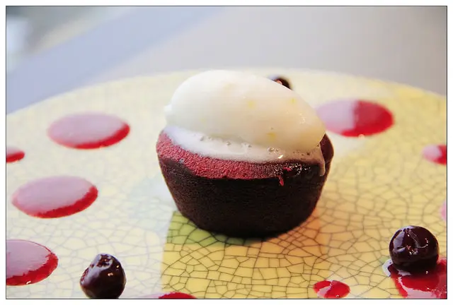 中間的莓果內餡加入了些許的巧克力~所以切開之後還是會有一點點的熔岩~