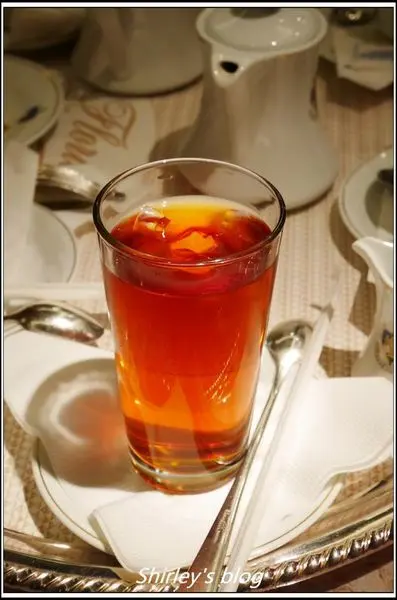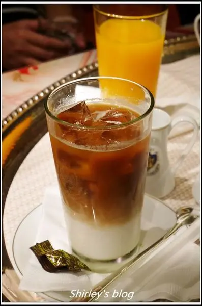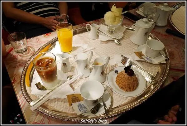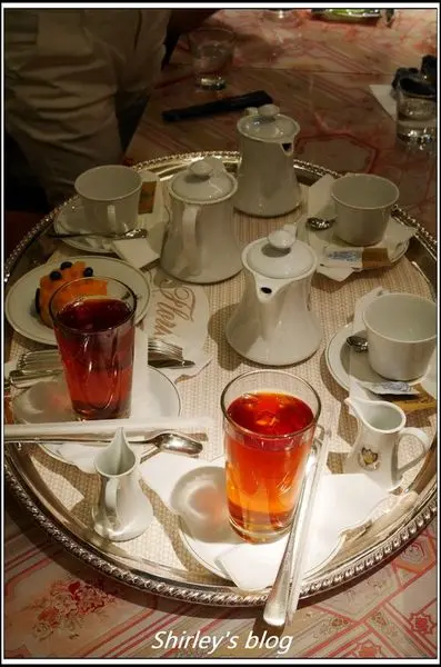 服務人員用銀製大托盤將我們十人的飲品分二次送桌