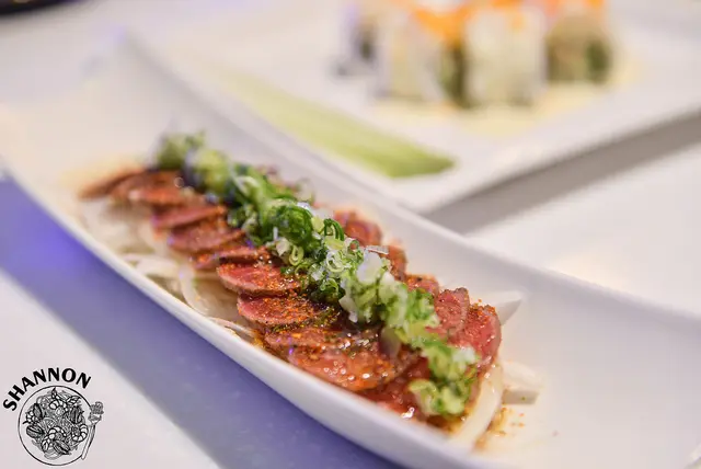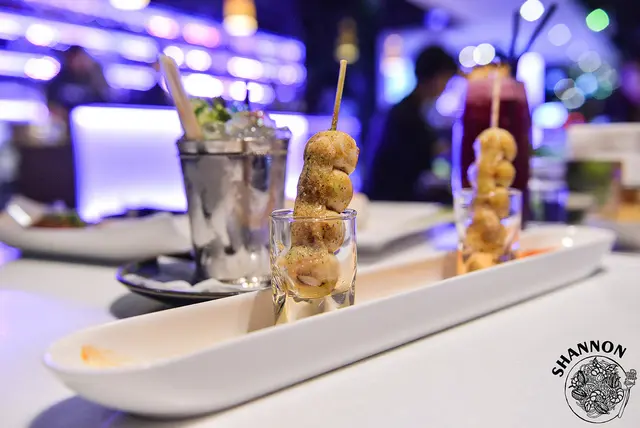 簡單來講就是日式料理搭配店家的創意擺盤,上方使用了割下醬汁和明太子做為麻薯的搭配,不過我們都認為割下醬汁有些鹹了點,明太子還蠻不錯吃的,口感富有彈性!