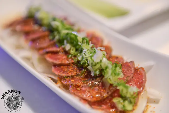 入口的確是很特別沒有嘗試過的感受,微微結冰的口感讓人不覺得是在吃牛肉,也由於嘴裡的溫度將牛小排溶化了覺得挺嫩口的!底下的洋蔥挺嗆口的所以稍為搶味了點,我和發發都還是比較喜歡退冰後再享用的味道和口感!