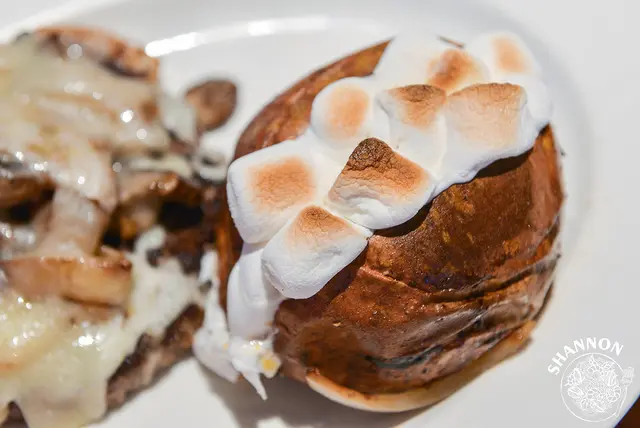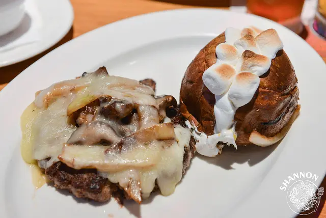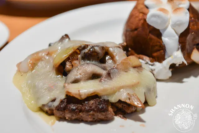 不過這個漢堡排真的不太行,肉有這麼些乾柴且香氣不夠,上面的起司和磨菇口味挺重的!吃起來有這麼些失望...