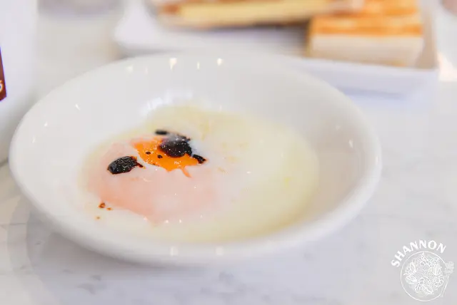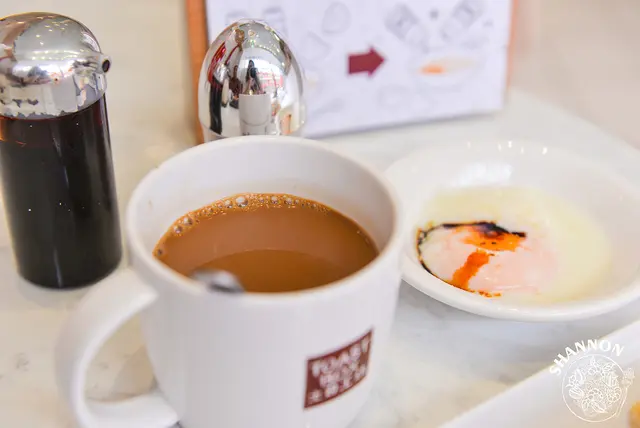 蛋的方面可以請店員改成煎蛋也沒有問題,搭配上店家桌面上的醬料和灑上胡椒直接吃就很美味了,不過下圖我加的有些少!