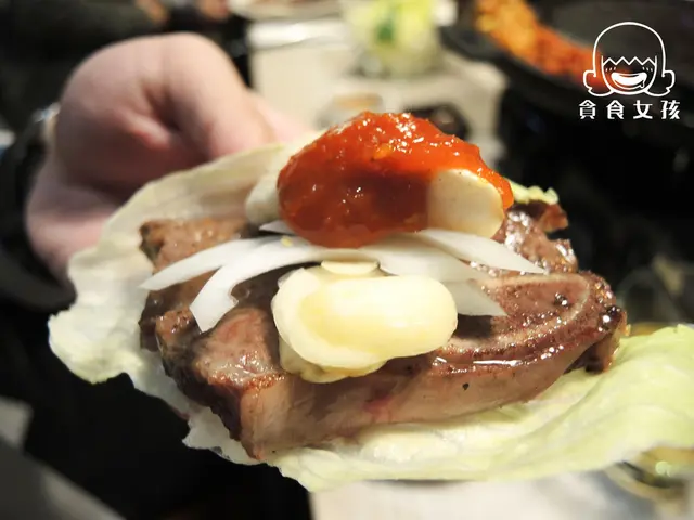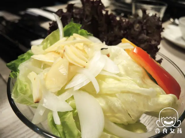 又是露易絲獨特吃法:生菜+牛小排+洋蔥+蒜頭,最後淋上醬料,洋蔥和蒜頭雖屬於重口味蔬菜,但也解油膩,吃起來較清爽些。