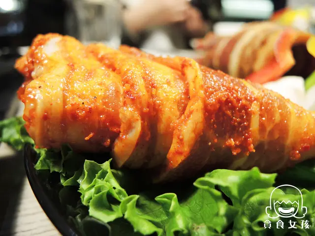 而裡頭餡料也不馬虎,MajorK將泡菜、洋蔥、香蒜、甜椒等配料和豬五花、中卷下去一同拌炒,紫蘇味道有點被辣醬蓋住,不過整體表現算是很不錯。愛吃辣的朋友,露易絲推薦這道主餐!
