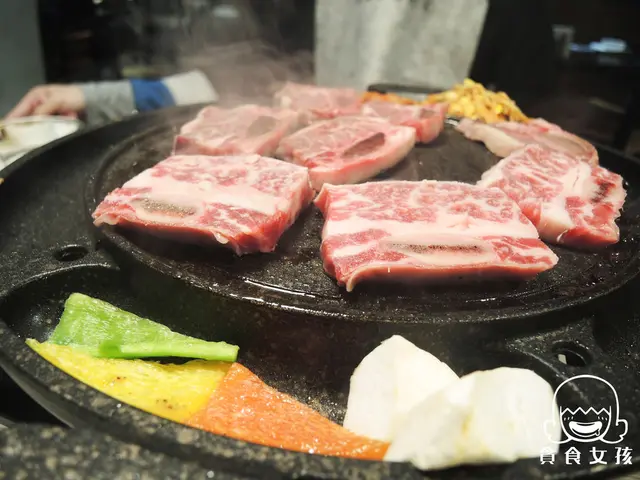 肉品韓式炙燒牛小排、牛五花吃到飽,另有豬五花可選 。