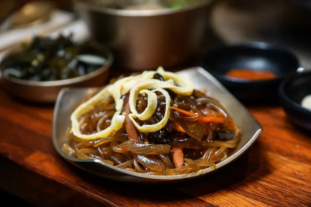 韓式冬粉口感不是那種特別Q的, 調味上鹹甜鹹甜,麻油香氣特別濃郁,口味不會太重滿涮嘴的。