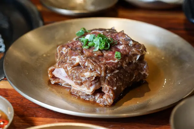 與無骨牛小排相比,豬肋排得黑胡椒味較重,水果是加入水梨醃製,整體口感甜鹹度依然恰好偏甜,肉質相當嫩口。