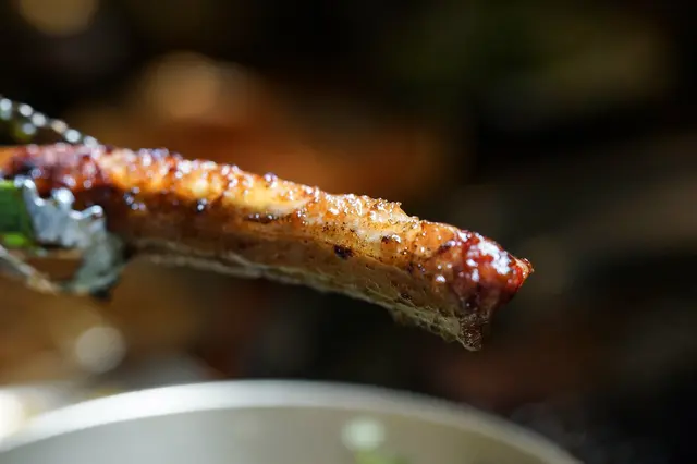瞧瞧這油花經高溫逼出表面的濕潤狀態,並且還有著焦褐色澤的迷人狀態!入口即能感受到豬肉濃醇的香氣。
