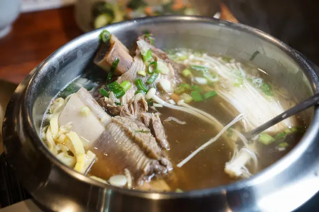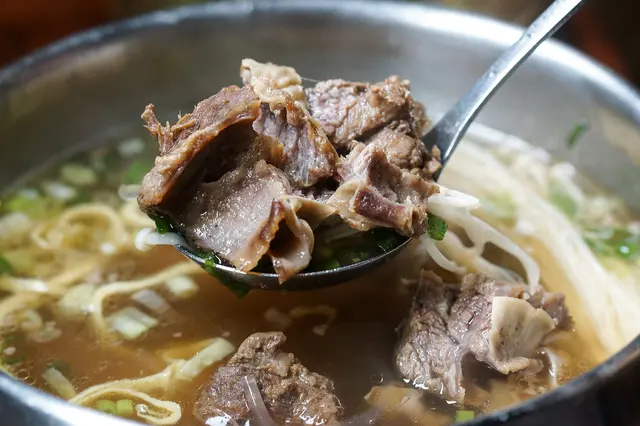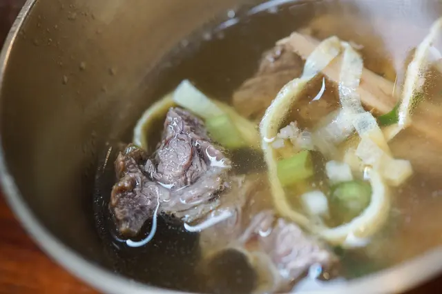 最後來個滋味既濃郁、口感又清爽的牛肋湯吧!挑選頂級牛肋排、牛筋及牛大骨不過度調味,一起燉煮,湯頭本身鹹度頗夠,喝起來很清爽但又兼具油度,牛肋排肉質燉煮的相當軟爛,牙一咬就骨肉分離。