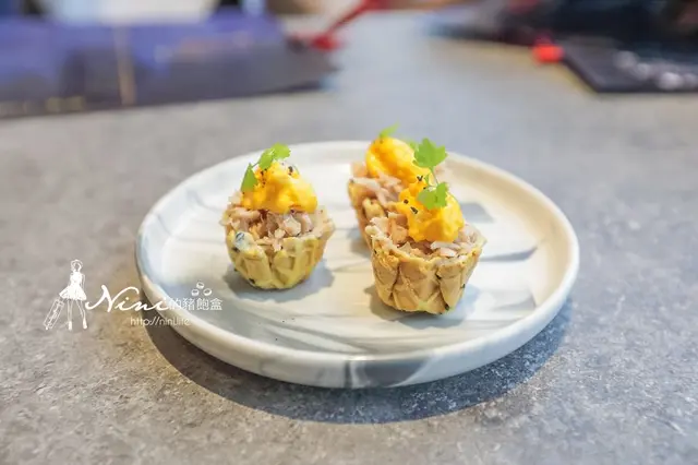 微辛的鮪魚和咖哩香氣平衡,紅蘿蔔醬淡甜,讓味道更有層次