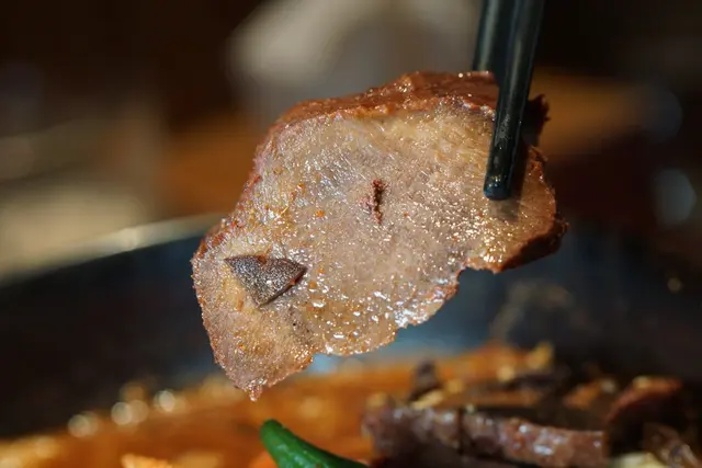 厚切牛舌份量給的不手軟,至少6、7片有,厚切的口感但內裡又相當嫩口,事先醃製過帶點酸鹹滋味,因此更是激發味蕾上癮程度