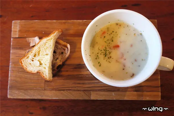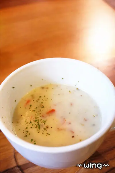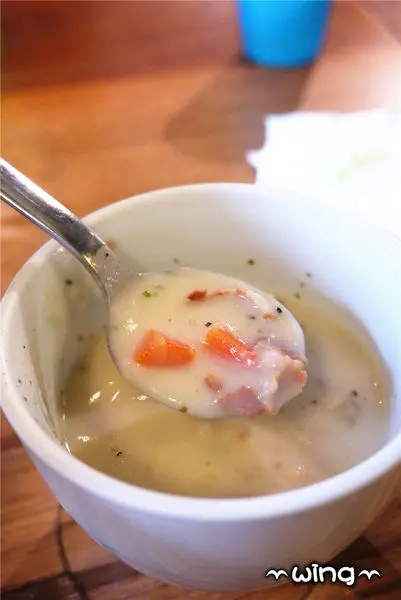 今日的湯品是火腿濃湯,加了不少紅蘿蔔、洋蔥等一同烹煮味道香濃,