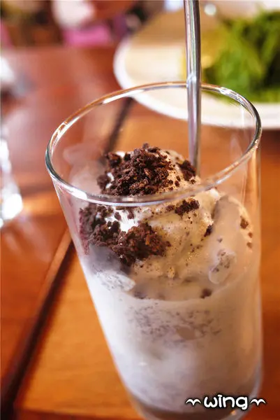 巧克力碎片奶昔喝來巧克力味香濃綿密,碎片增添口感,味道對我來說不會太甜。