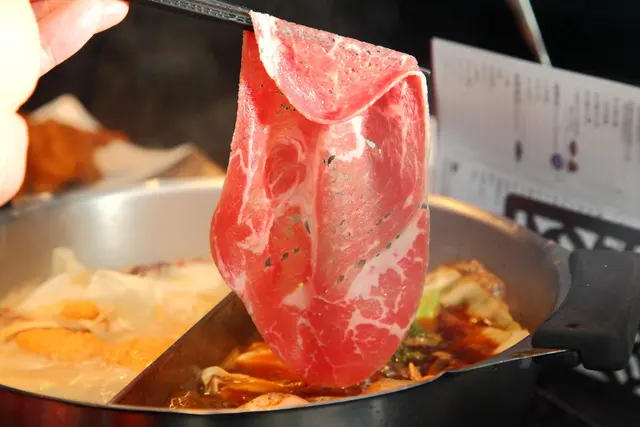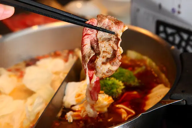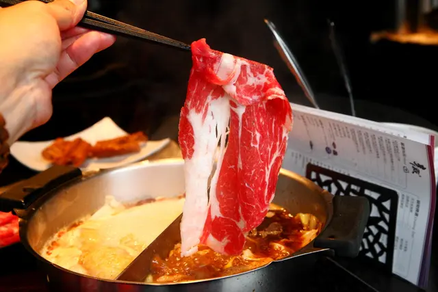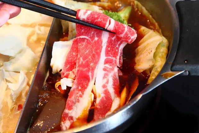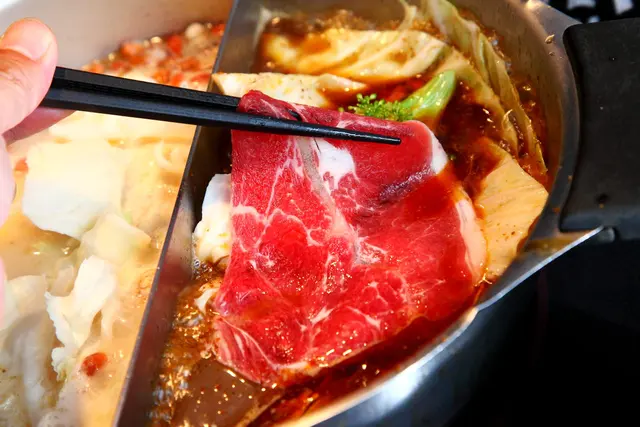 下鍋輕涮,大理石紋路層次鮮明的美國CAB安格斯雪花牛,油脂分布均勻豐富,鮮甜的牛肉油汁鮮味在口中釋放,幸福飽足的味道!