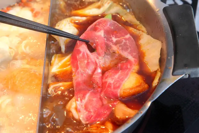 美國PRIME無骨牛小排細緻軟嫩的口感並兼俱香醇風味的完美油花,在噴香的麻辣鍋裡川燙,川燙3~5分熟後入口,口感香嫩多汁,麻辣湯底香氣更加提升襯托出美國PRIME無骨牛小排的肉汁甜味!
