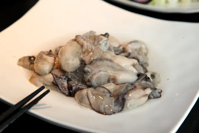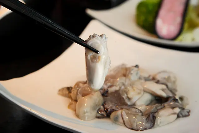 辛殿麻辣火鍋-信義店的海鮮都是漁港直送,看看這新鮮肥美的東港鮮蚵,丟下去白湯輕輕涮,滑溜入口,新鮮海潮在口中爆漿!鮮呀!