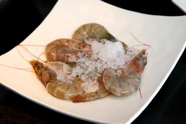 大白蝦,用碎冰保鮮.光看閃亮亮蝦殼的光澤度就知道鮮度如何!這白蝦除裡體型較小外,可以說是毫無挑剔之點,鮮度一流,口感爽脆鮮甜!要不是時間快到了,應該會再點個兩三盤來嗑