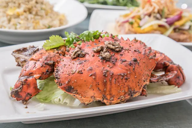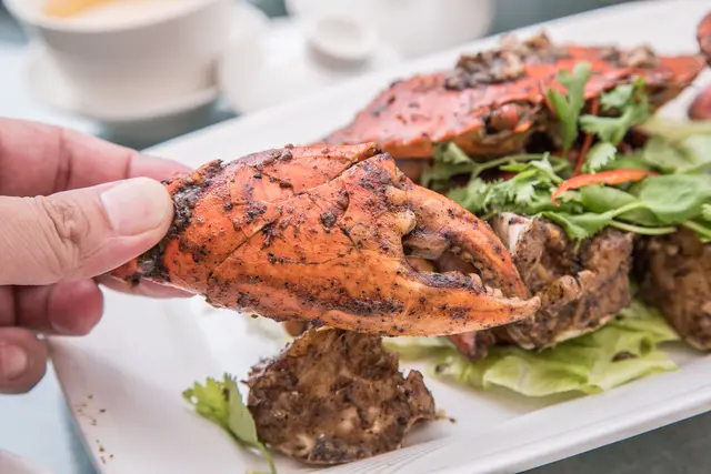 一口吃下黑胡椒螃蟹,首先妳會感受到黑胡椒的辣度及香味,但因為加入了奶油的關係,讓黑胡椒的辣跟香變的溫潤,藉此凸顯沙公的鮮及飽滿多汁的肉質,辣度是稍稍走後勁,越吃越爽,咬咬連蟹殼上的黑胡椒都舔乾淨呢
