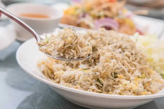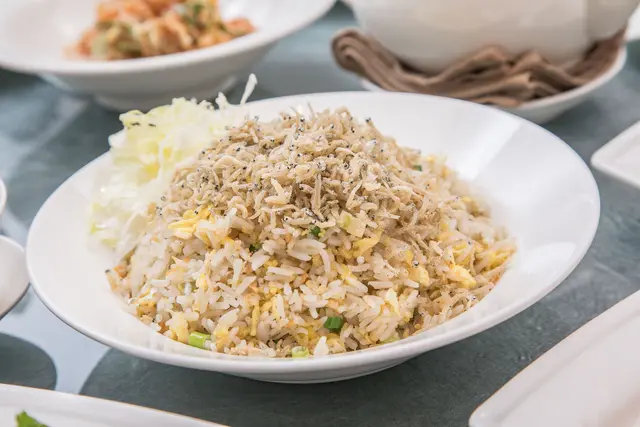 這個蒜香吻仔魚飯很好吃!炒飯是用泰國米來炒,粒粒分明不油膩,搭配鮮香的吻仔魚,微微的蒜香讓人吃上一口就欲罷不能!
