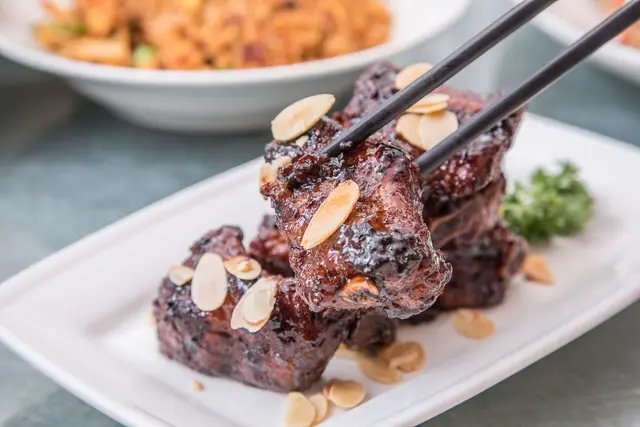 這道摩卡排骨必點,加入摩卡咖啡粉和巧克力醬與排骨一起烹調,我們一致認為除了沙公之外最好吃的一道料理,排骨吃起來肉質厚實多汁,表面有些許噴香的焦脆感,入口竟有巧克力的甜香及咖啡的苦香氣息,口感味道繚繞且多變,超好吃!