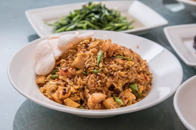 相當南洋風的一道炒飯,利用蝦醬和番茄汁下去炒,加上蝦子、四季豆、蛋和豆干不同口感香味的配料一起拌炒,口感豐富,咬咬沒吃完隔天帶便當回蒸一樣好吃!