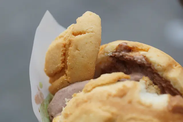 Big Size的菠蘿麵包,外皮脆硬,內裡夾了三種口味的明治冰淇淋