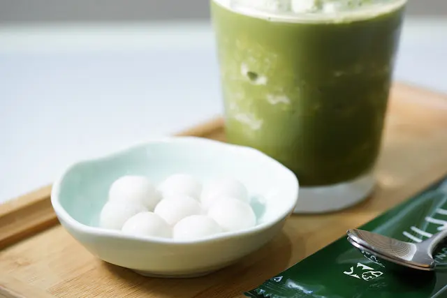 兩款湯圓,不論是單獨享用或是加入濃抹茶中一起享用都有著明顯的風味