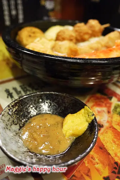 關東煮附的味噌醬和黃芥末醬,我只沾了1-2次試試味道,老闆也有叮嚀我們先吃原味再來沾醬,品嚐原始的味道後才知道每種食物的風味如何。