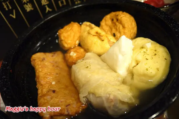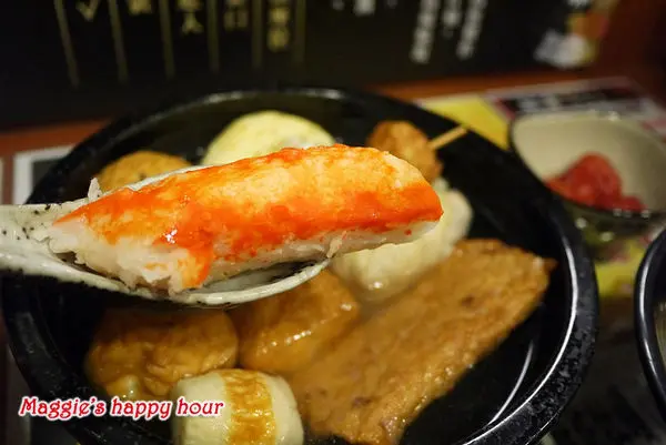 接著關東煮先登場,裡面一共有11種的口味,光看外觀就跟我們平常看到的關東煮很不一樣。而且這裡的關東煮湯頭都是用柴魚和昆布熬煮出來的,真材實料用心製作的關東煮是老闆的堅持,要吃就要吃最正統的!
