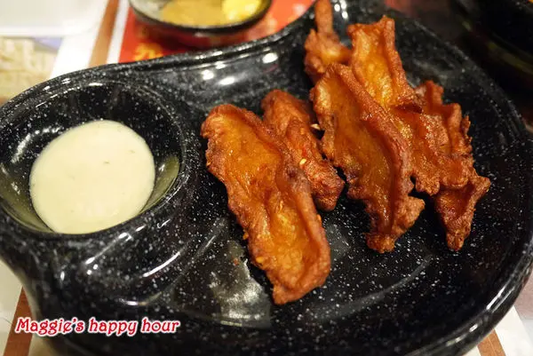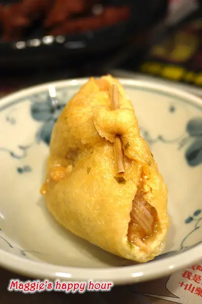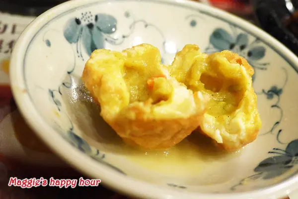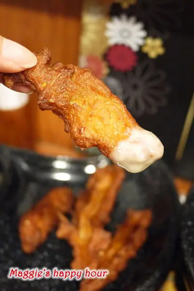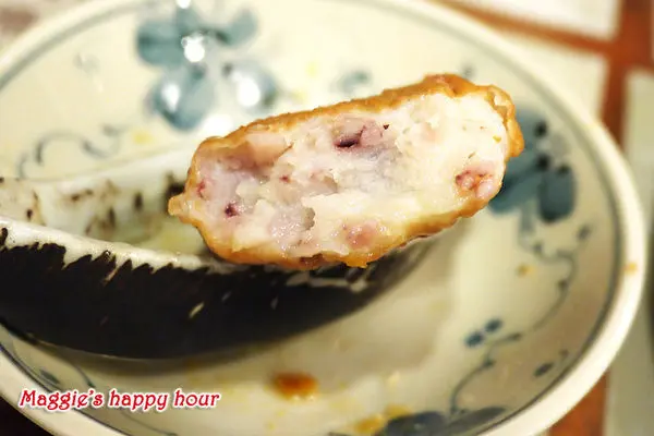 「辣牛蒡炸」並非一般常見的牛蒡絲下去炸的,而是牛蒡漿,吃起來帶點微辣的口感,外酥內軟,風味獨特。