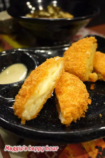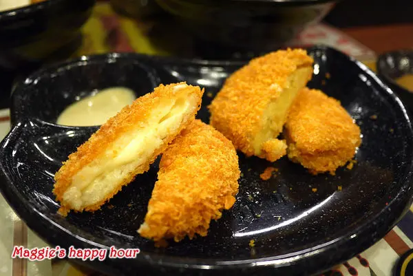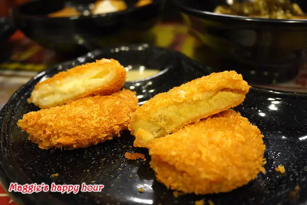 「咖哩&起司可麗餅」炸得黃金色澤熱呼呼的可麗餅,從橫切面就能看出來是什麼口味的,左邊是起司口味,外層的麵包粉薄而酥脆,內層包裹著洋芋泥和中間的起司,一口咬下十分滿足又很有飽足感,來這裡不忘點上起司可麗餅來滿足一下味蕾。