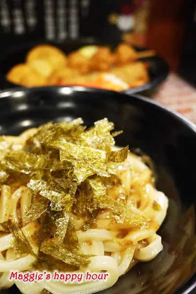 「胡麻烏龍麵」烏龍麵搭配香濃的胡麻醬,上頭再加上海苔絲,拌勻後每根麵條都裹上胡麻醬,當我第一次送入口中那胡麻的香氣強勢的在我的口腔中散開來,而那烏龍麵彷彿也跟著彈跳起來,麵條的Q度就像是18歲正值血氣方剛的小伙子熱情有勁啊!吃過不少美食的我輕易的就被這碗麵給征服了!!!