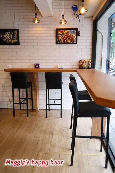 空間不小的工作吧台前也規劃了幾個單人座位,若不怕鬆餅香正面攻擊的朋友倒是可以坐這裡,但我想一整個會處於肚子餓的狀態吧!XDDD