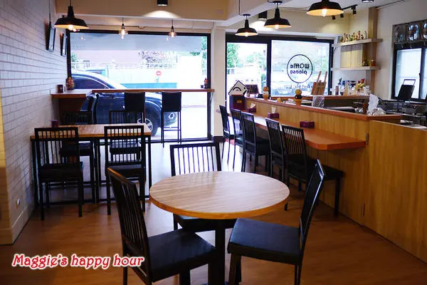 店裡的空間清爽,座位和座位之間不擁擠,室內燈光溫暖又明亮,真是一個可以久坐的好地方啊!像咖X弄或米X琪之類的店,雖然餐點好吃,不過有限時間座位又很擁擠,我一直很不喜歡跟鄰座之間靠太近,感覺說個話很容易被聽見,若想起個身或坐太久想伸懶腰都會不小心弄到別人,相對之下Waffle Please座位安排間的距離感,讓人感覺舒服多了,這點很讚!