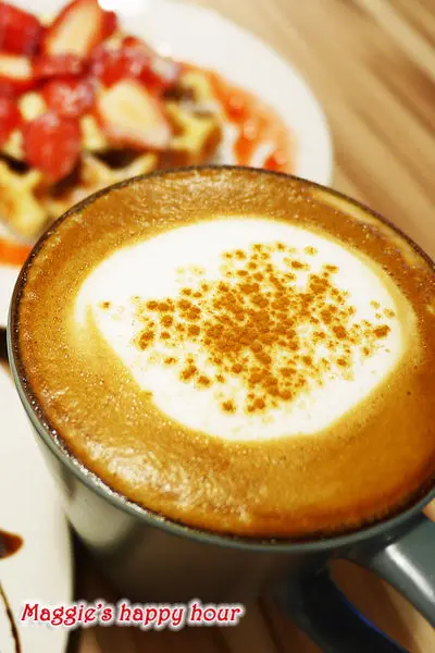 「卡布奇諾」咖啡的味道很濃香味也夠,上頭灑上了肉桂粉,在出餐前服務人員會先問要不要加糖和肉桂,這點倒是很貼心,而且這蠻大一杯百元有找,可以讓我可以配著鬆餅坐一下午呢!