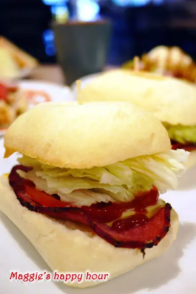 三明治和巧巴達也各有四種口味可選擇,讓想吃鹹食的朋友也可以過來坐坐,像我就不能光吃甜食,有供應鹹食的咖啡店我會比較願意進來消費。飲料部份選擇也不少,大家喜愛的咖啡、花果茶和其他氣泡飲都有,價格也比起一般咖啡店裡的飲品來得便宜,而且搭配鬆餅或輕食都還能折價10元,對小資族來說相當有吸引力。