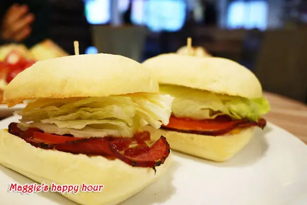 「黑胡椒牛肉巧巴達」二個橢圓型的樣子好可愛,裡面夾著大量的生菜沒有在客氣。