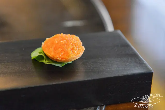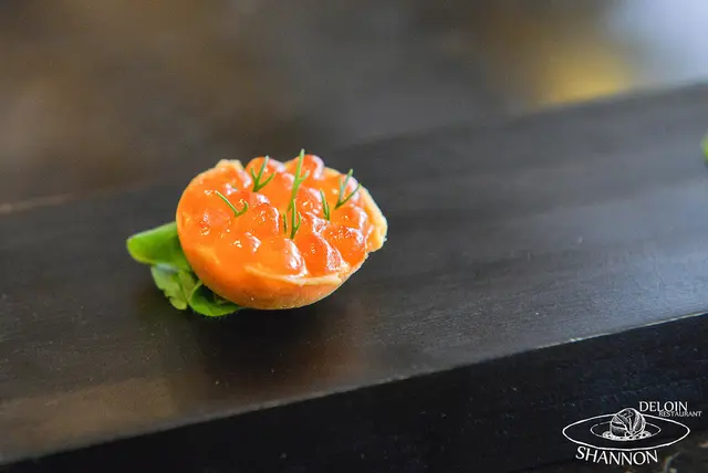 鮭魚卵的鹹度較高了一點但是口味適中,一起入口不僅有塔皮的酥脆也感受的到鮭魚卵在嘴裡爆漿的滋味!