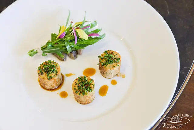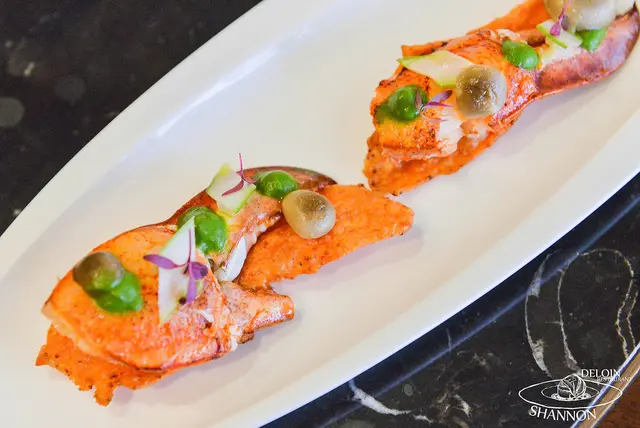 我真心認為是我吃過最美味的龍蝦了,在使用餐刀切的時候已經明顯的感受到龍蝦彈性,一入口不僅龍蝦肉質鮮甜又帶有彈性,讓我非常的滿足!底部可搭配著日本白蘿蔔(大根)和鮭魚卵一同享用,鹹香夠味層次豐富,整體口感充滿了脆、Q彈和爆漿的驚喜,大大推薦這道料理!