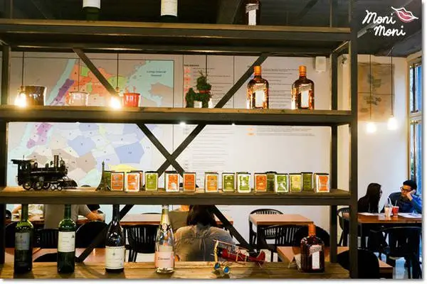仔細一看,發現店內的擺飾品有許多的紅酒瓶,茶罐以及復古直升機,