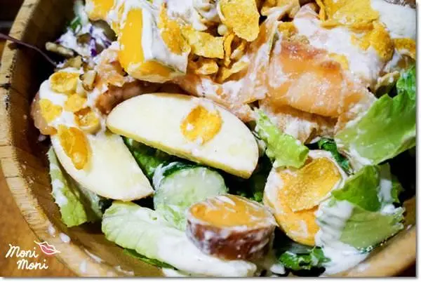這道鮭魚沙拉還有更厲害的地方就是裡面的配料真的多了很多不常見的東西,