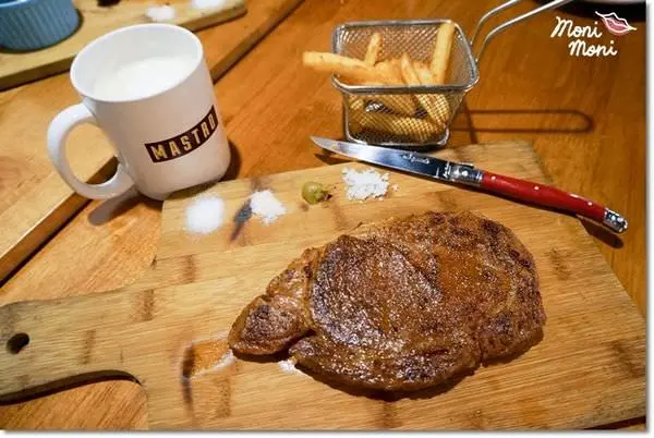 Mastro Cafe 的肋眼牛排做法和一般不太一樣,你會發現他們的牛排顏色比較深一點,