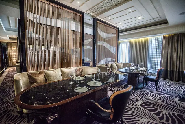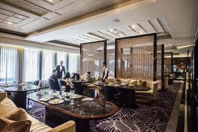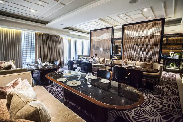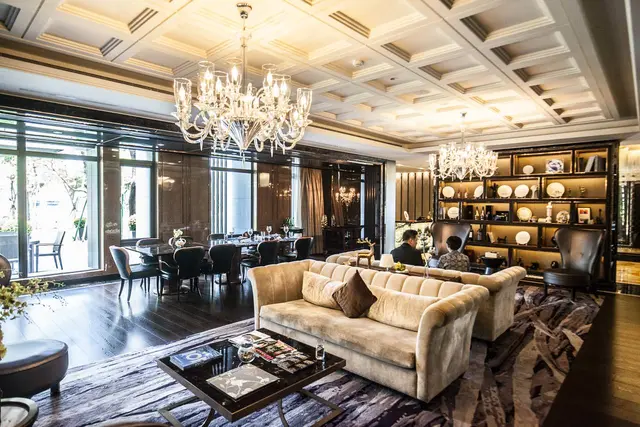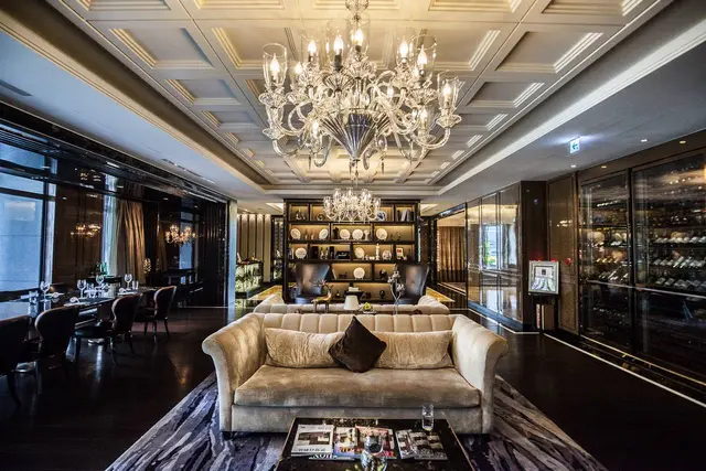 服務生將我們帶到候位的空間,以新現代東方的空間美學,融合國際時尚潮流,很難想像這裡只是候位區而已,採用歐式古典風格的家具,開闊壯麗的空間感,儼然就是把百坪豪宅直接搬進餐廳內,坐在沙發上,候位不是漫長的等待,而是一種潮流奢華的體驗