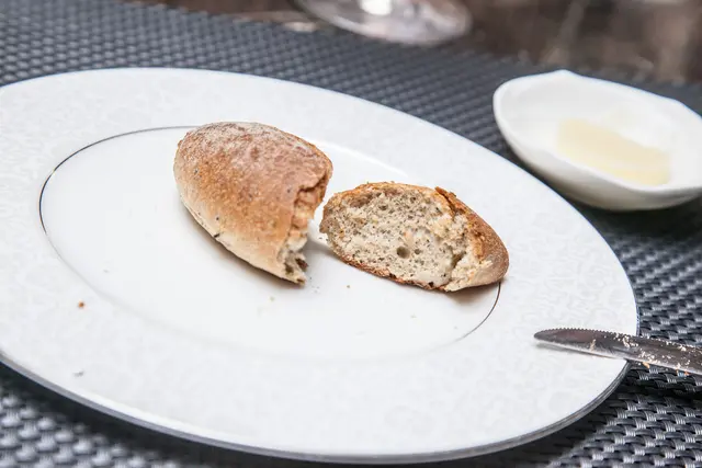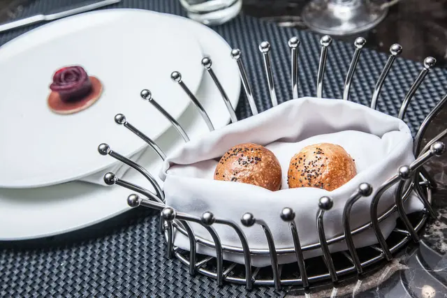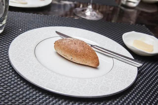 與伊比利豬頰佐紅酒甜菜根搭配的還有專屬的圓歐包