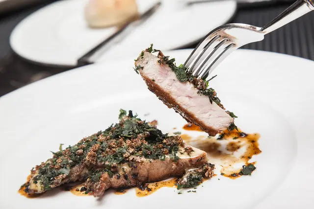 伊比利肋眼是伊比利豬肉中最嫩的部位,是伊比利豬中最好的部位,口感就像頂級牛肉一般柔軟,與鴨肝奶油一起烹調