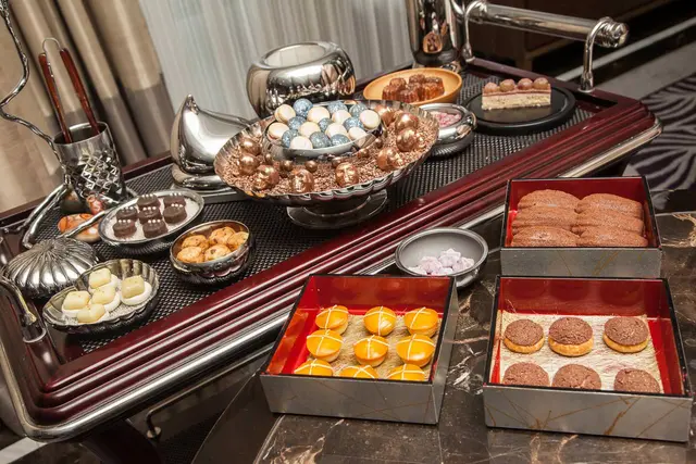 吃完主餐後,稍作歇息,管家推來了一車各式甜點!一個人可以選五樣甜點