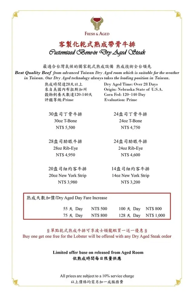 ▲ 24盎司丁骨牛排/乾式熟成55天