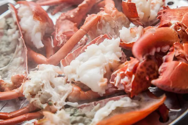 波士頓龍蝦已經事先處裡過了,蝦身跟蝦螯都敲開,很容易就可以將肉取出