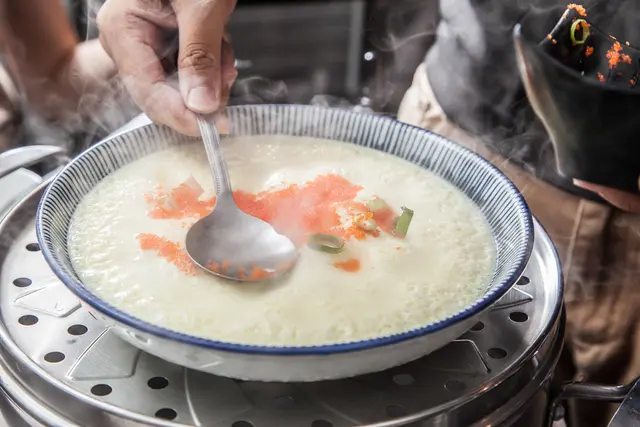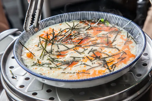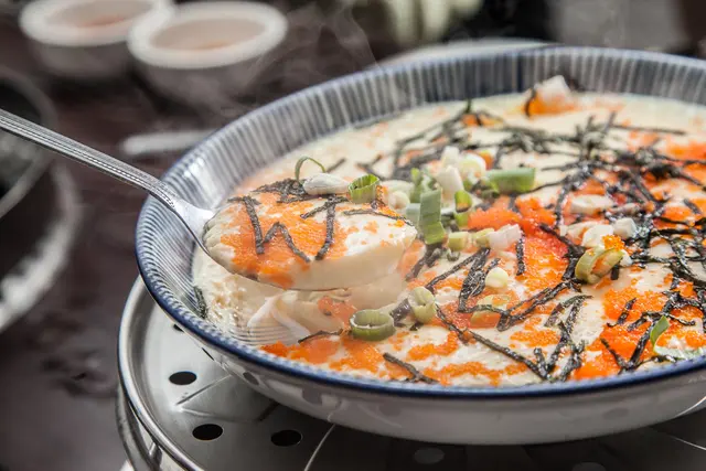 蒸蛋人人會做,巧妙各有不同,蒸霸王東湖店的蒸蛋超厲害!蒸蛋蒸好後還會鋪上一層魚卵