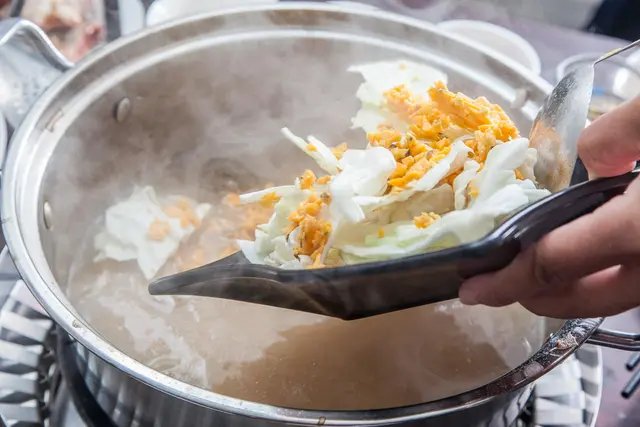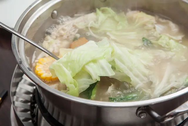服務生依序幫我們下火鍋料跟蔬菜,配料在鍋中稍微煮一下就可以吃了
